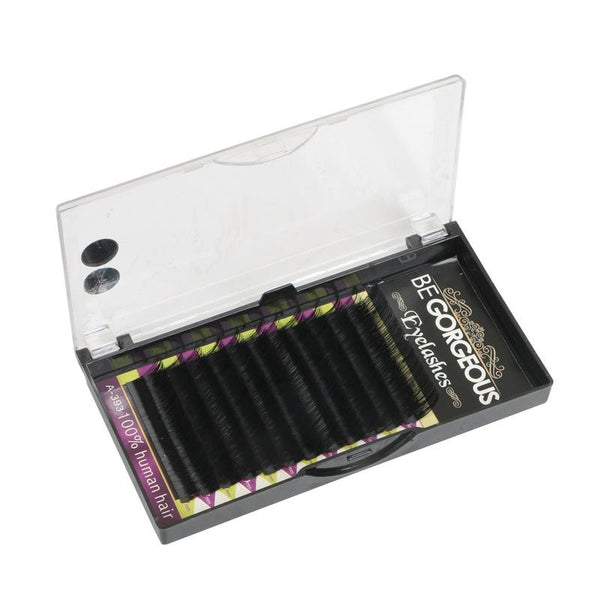 These are premium quality Human hair eyelash extensions. Most eyelash extensions will lose their curl after only a week leaving your client unhappy and have a blue hue that looks unnatural and fake. Be Gorgeous eyelash extensions are guaranteed to keep their curl for their entire life. This will make your client happy and keep them coming back for more
